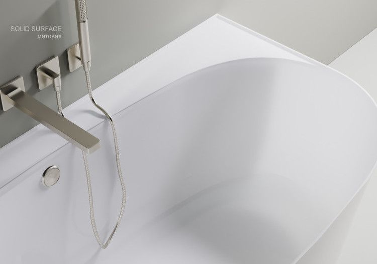 Solid Surface - композитный материал изначально белого цвета на всю толщину изделия, нанесение защитного покрытия не предусмотрено. Обычно, имеет матовую поверхность. Возможна реставрация.