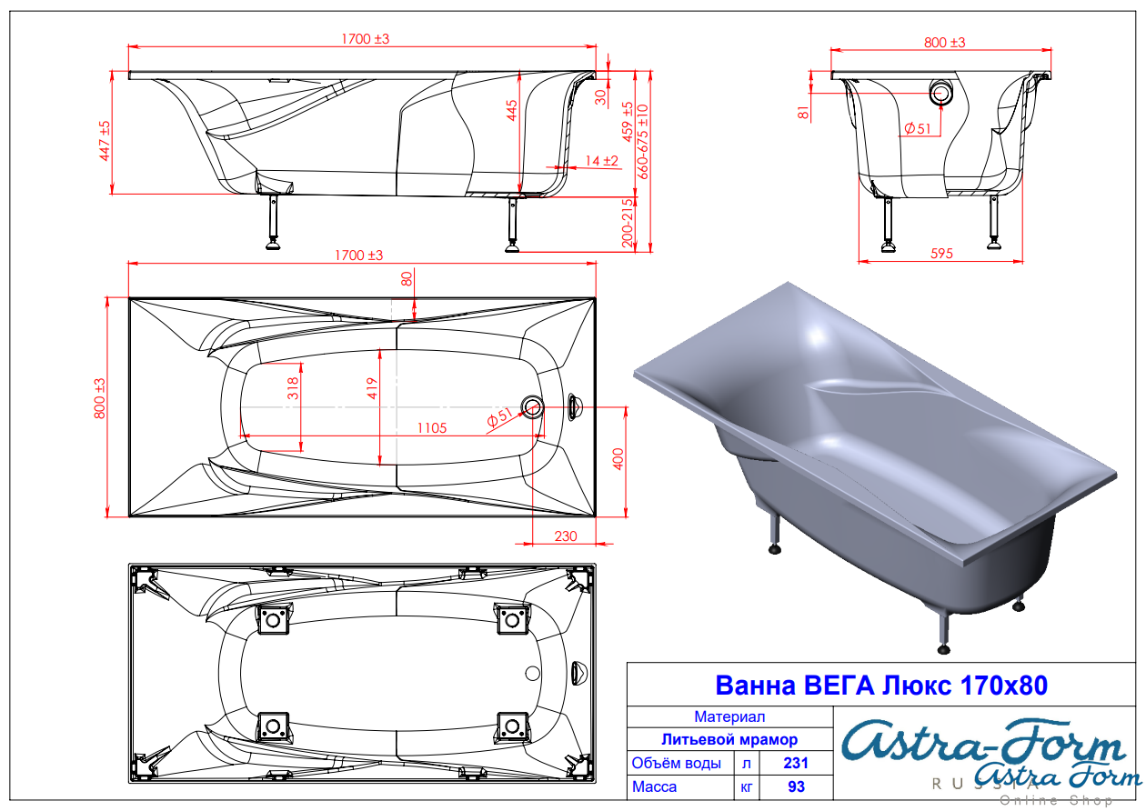 Размер: Длина/Ширина170/80 см.ТипвстраиваемаяВысота67 смГлубина ванны44 смОбъем231 лМАТЕРИАЛ ИЗГОТОВЛЕНИЯ ВАННЫЛИТОЙ МРАМОРВес93 кгСтрана изготовленияРоссия