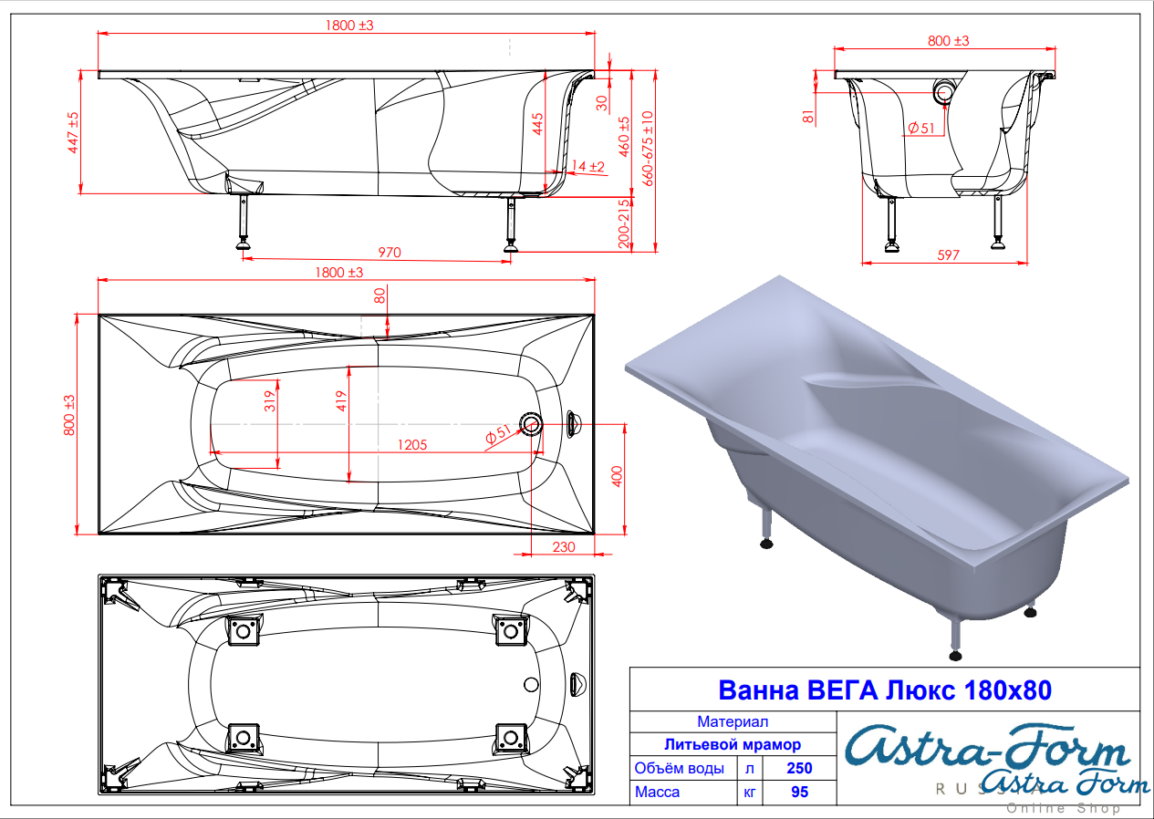 Ванна Astra-Form Вега Люкс 180/80 см — это премиальное решение для современной ванной комнаты, сочетающее в себе: