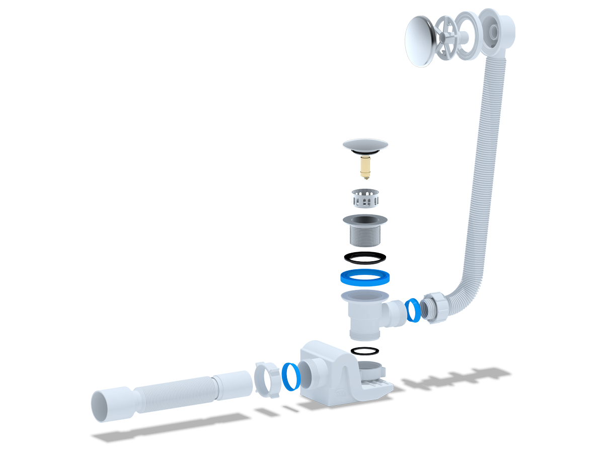 • Для ванн с отверстием слива Ø50 мм и отверстием перелива от Ø48 до 62 мм (стандартное отверстие 50 мм)