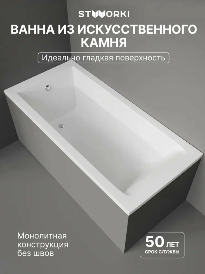 Ванна из искусственного камня STWORKI Ольборг 180x80 см
