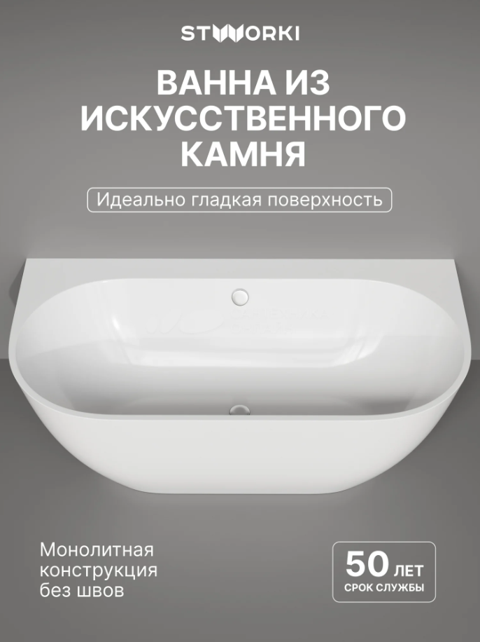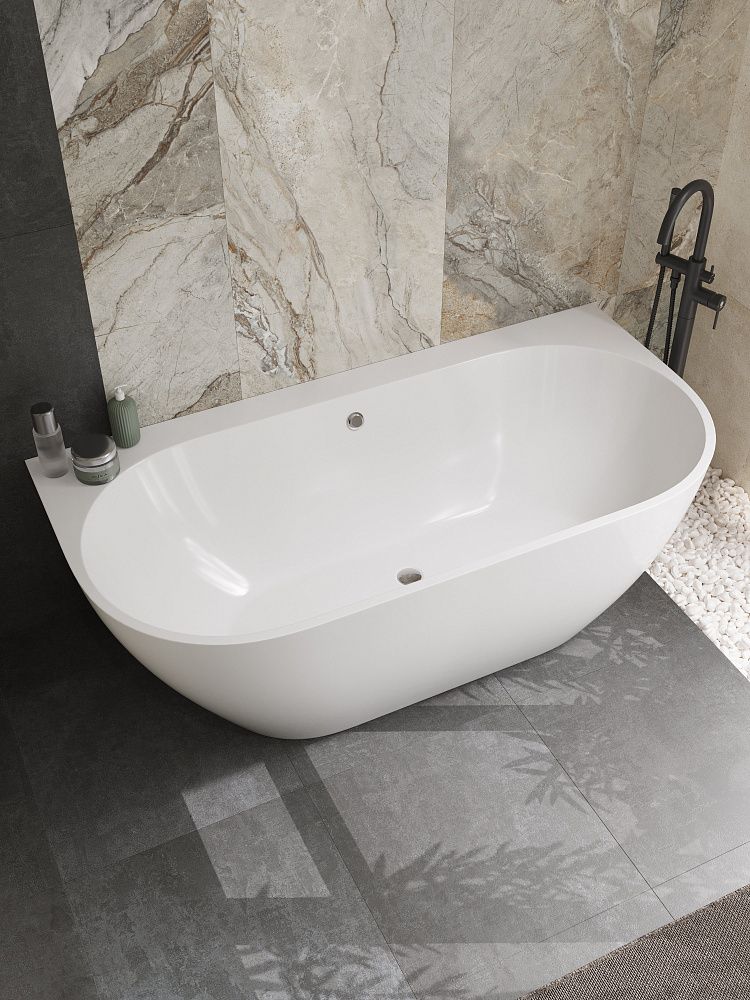 Ванна из искусственного камня STWORKI Левангер 170x85 см, пристенная, белая